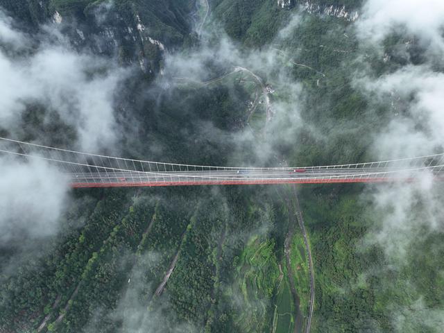 湖南湘西:俯瞰云雾中的矮寨路桥播报文章