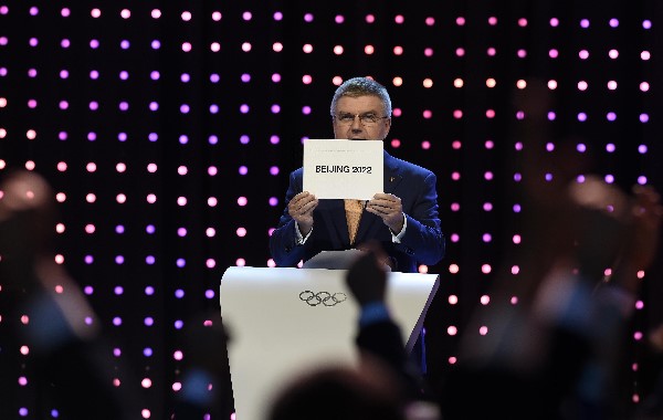 IOC President Thomas Bach announces Beijing as the winner of the 2022 Winter Olympics bid during the 128th IOC session in Kuala Lumpur, Malaysia, July 31, 2015. (Xinhua)
