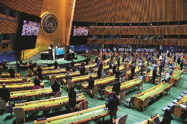 A convention on the global fight against COVID-19 is held at the UN headquarters in December. [Photo/Xinhua]