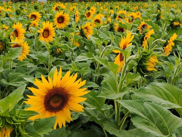 Endless fields of sunflowers basking in the sunshine