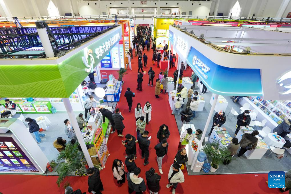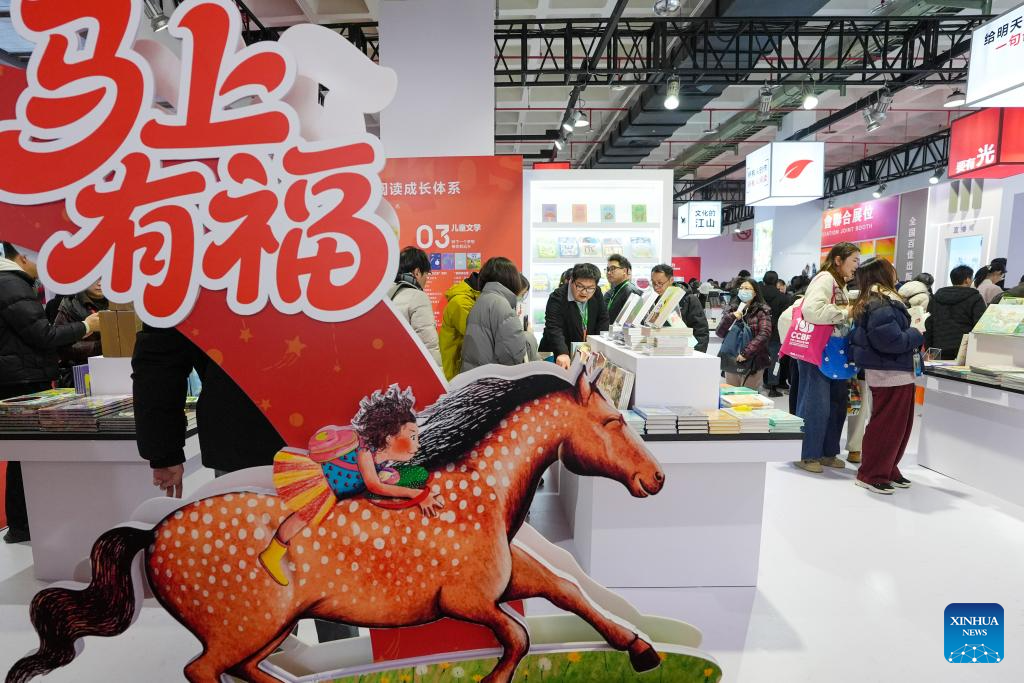 People visit the 2026 Beijing Book Fair in Beijing, capital of China, Jan. 8, 2026. The 2026 Beijing Book Fair kicked off here on Thursday, with over 400,000 titles on display. This year's book fair features more than 10 themed zones as well as an exhibition area for various cultural products. (Xinhua/Ju Huanzong)