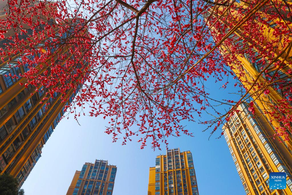 Plum blossoms are seen in Kaili, southwest China's Guizhou Province, Jan. 17, 2026. (Photo by Liang Huibo/Xinhua)