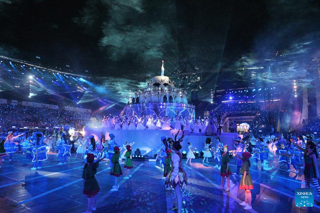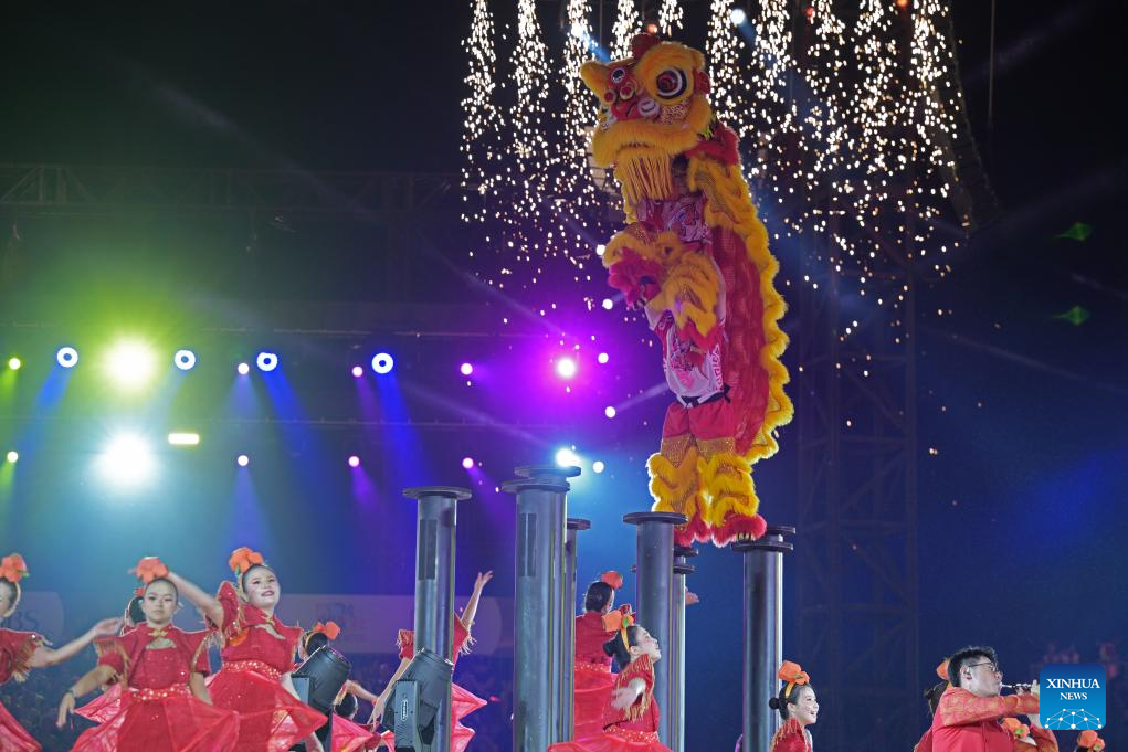 Performers dance during the Chingay Parade as part of the Lunar New Year celebrations in Singapore on Feb. 27, 2026. (Photo by Then Chih Wey/Xinhua)