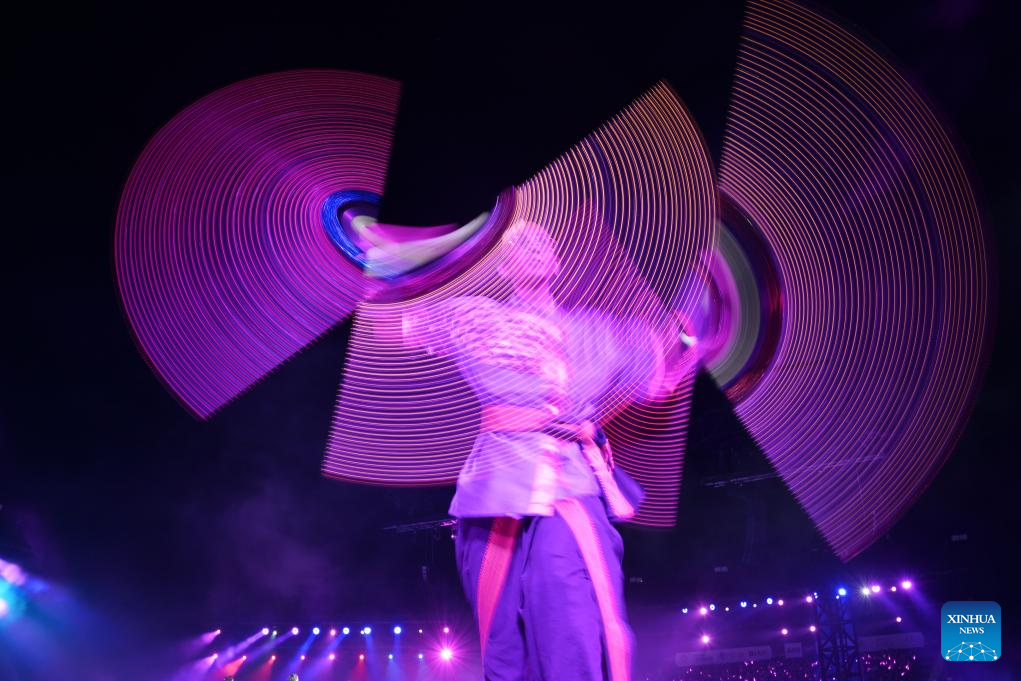 A performer dances during the Chingay Parade as part of the Lunar New Year celebrations in Singapore on Feb. 27, 2026. (Photo by Then Chih Wey/Xinhua)