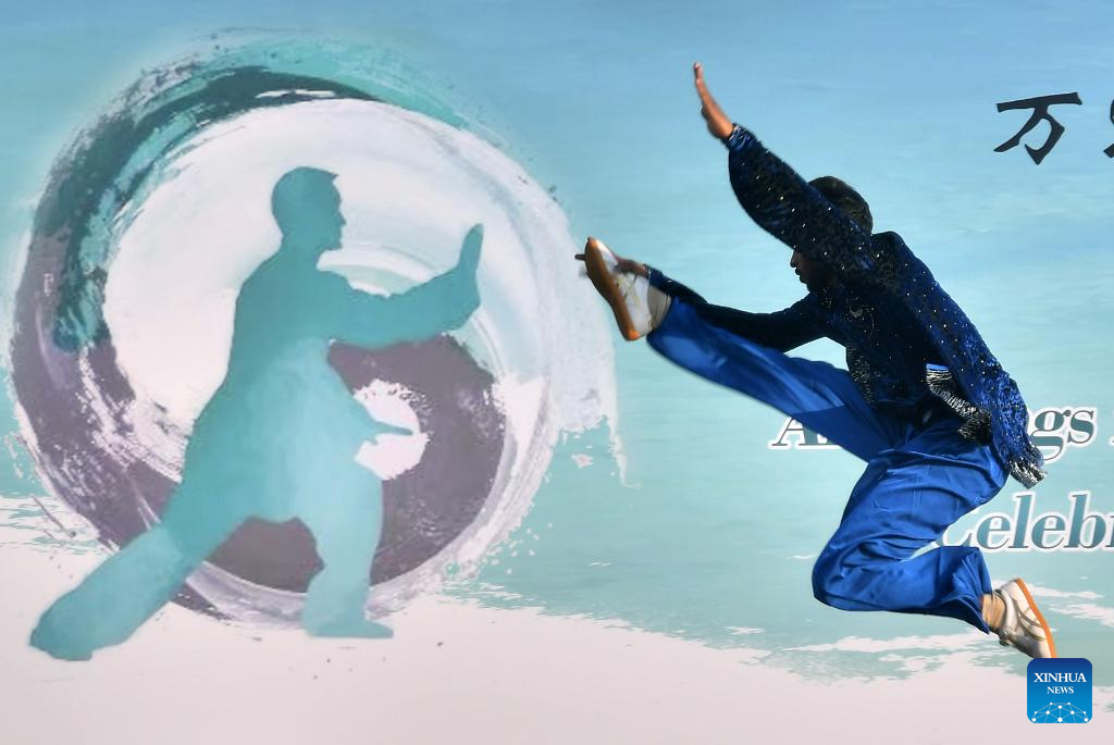 A local enthusiast performs Taiji at the "All Things in Harmony Taiji Promotion Event" in Colombo, Sri Lanka, April 25, 2026. (Photo by Ajith Perera/Xinhua)