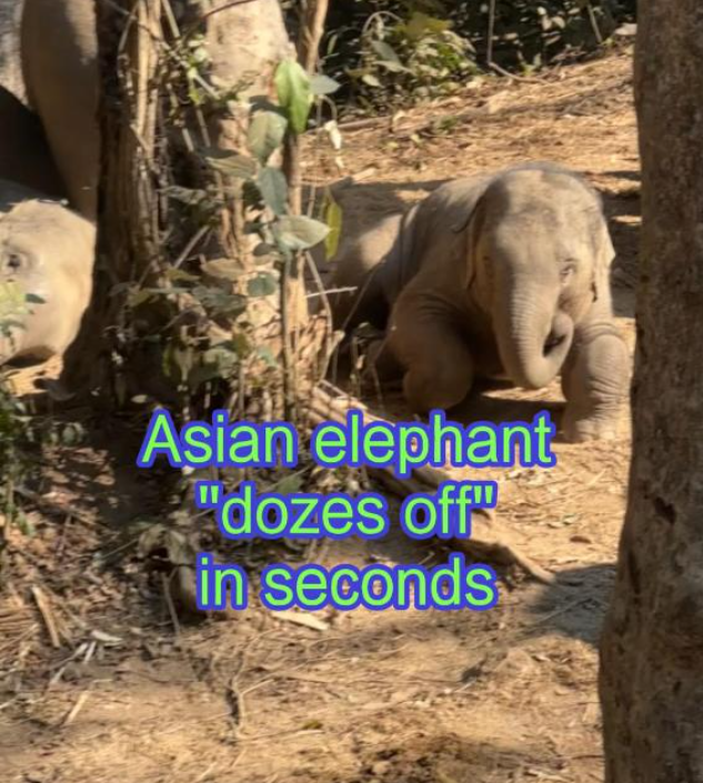 Adorable moment: A young Asian elephant appeared to doze off in seconds, alongside several nappi...