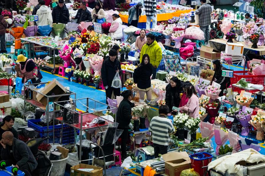 As the spring breeze sweeps through Dayan Ancient Town in Lijiang, Yunnan province, the rose tre...