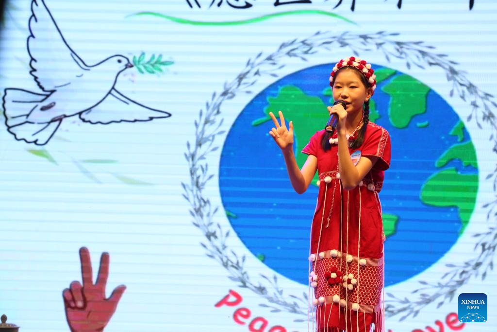 Children gathered at the China Cultural Center in Yangon on Sunday for the final round of the 9t...