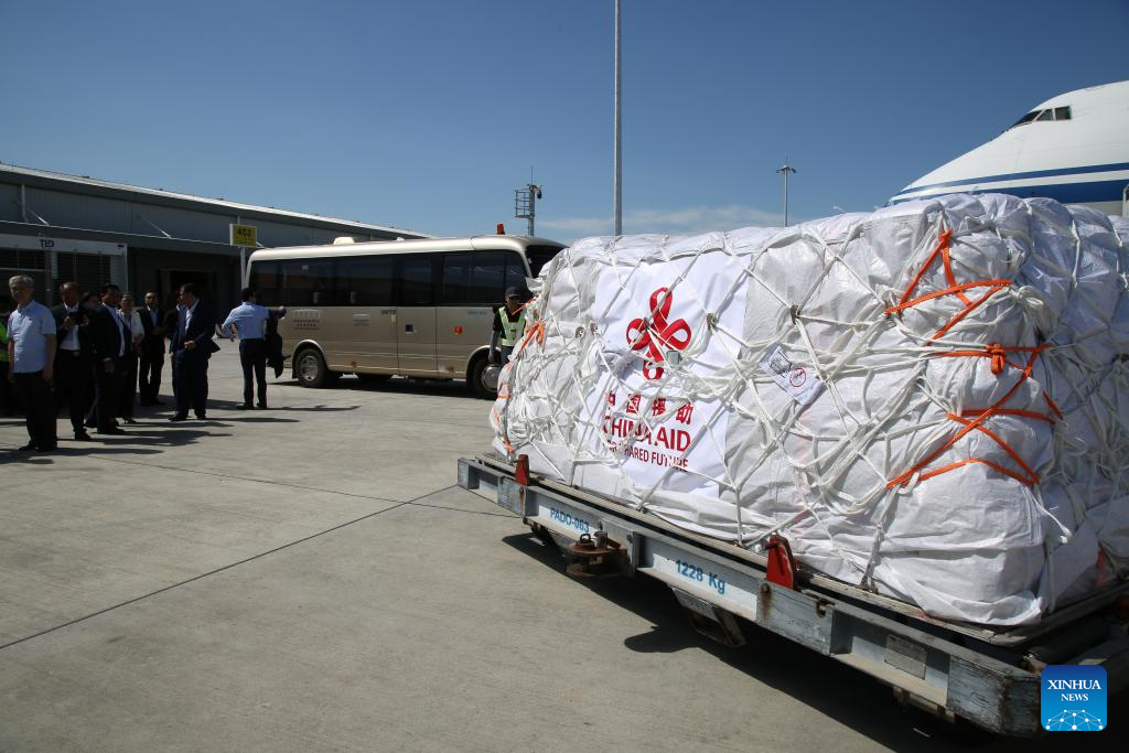 The first batch of emergency humanitarian aid supplies provided by the Chinese government to Cam...