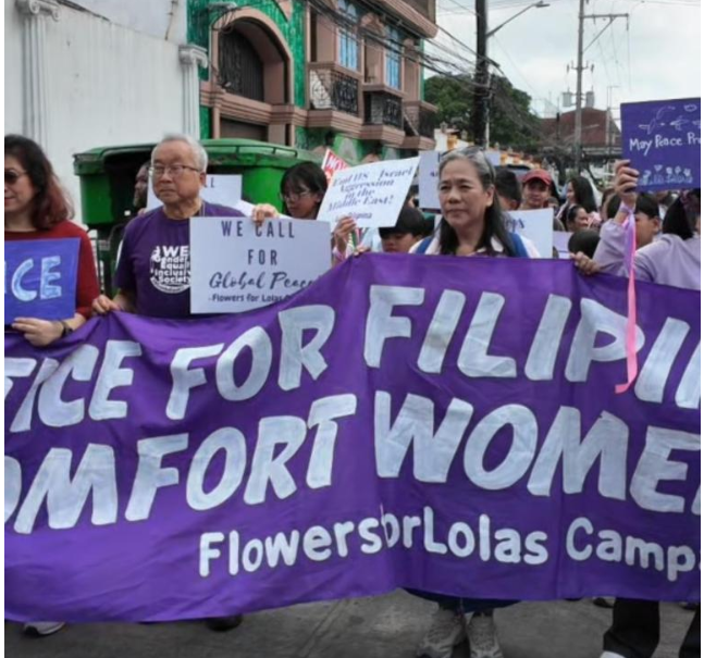 Around 100 Filipinos marched through downtown Manila on Sunday to commemorate victims of wartime...
