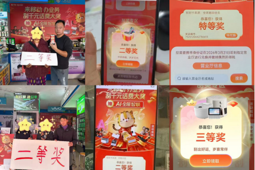 目前活动正在火热进行中,将于2026年3月31日截止,想要得大奖抽好礼的用户,赶紧前往云南移动营业厅参与吧,还有更多好礼等你来刮。