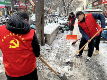 “师傅,雪天路滑,您慢走,注意脚下!”“阿姨,台阶有冰,扶好扶手更安全!”一声声暖心叮咛与一次次铲雪动作同频共振,让为民服务从“清扫路面”延伸到“温暖人心”,用实干为群众筑牢冬季出行的“安全防线”。