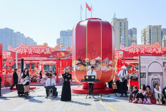 本届年货节突破了传统集市模式,通过多元场景营造,为拉动节日消费创造了新的增长点。在一期西广场占地5000平米的“潮趣年集”中,特色摊位有序排列,非遗活动轮番上演,充分满足了消费者多样化、品质化的购物需求。