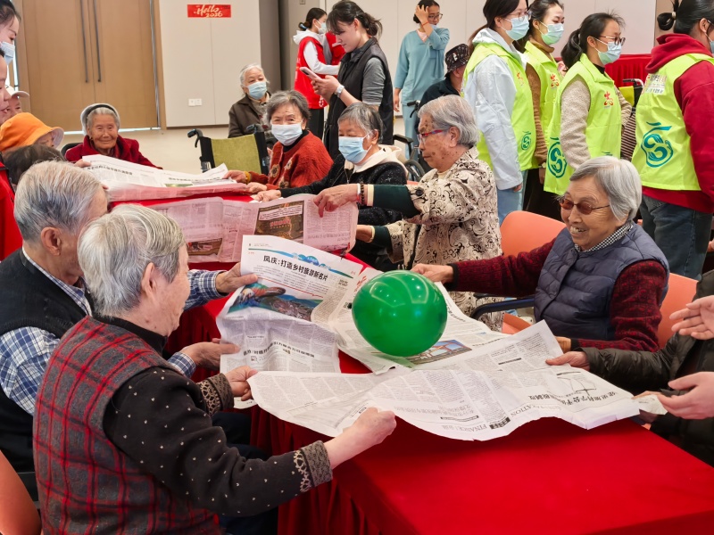 活动以“游戏破冰+红歌传情”拉开序幕。志愿者与长者围坐,通过传球游戏、趣味手指游戏迅速拉近距离,欢声笑语中,长者们脸上漾开笑意。当《我和我的祖国》旋律响起,爷爷们轻抚胸口跟唱,歌声里沉淀着对青春的追忆;奶奶们随着节奏轻轻摇摆,哼唱间道出对祖国的深情。歌声穿越时空,将两代人的心灵紧紧相连,让“爱国、奉献”的雷锋精神在旋律中焕发新生。
