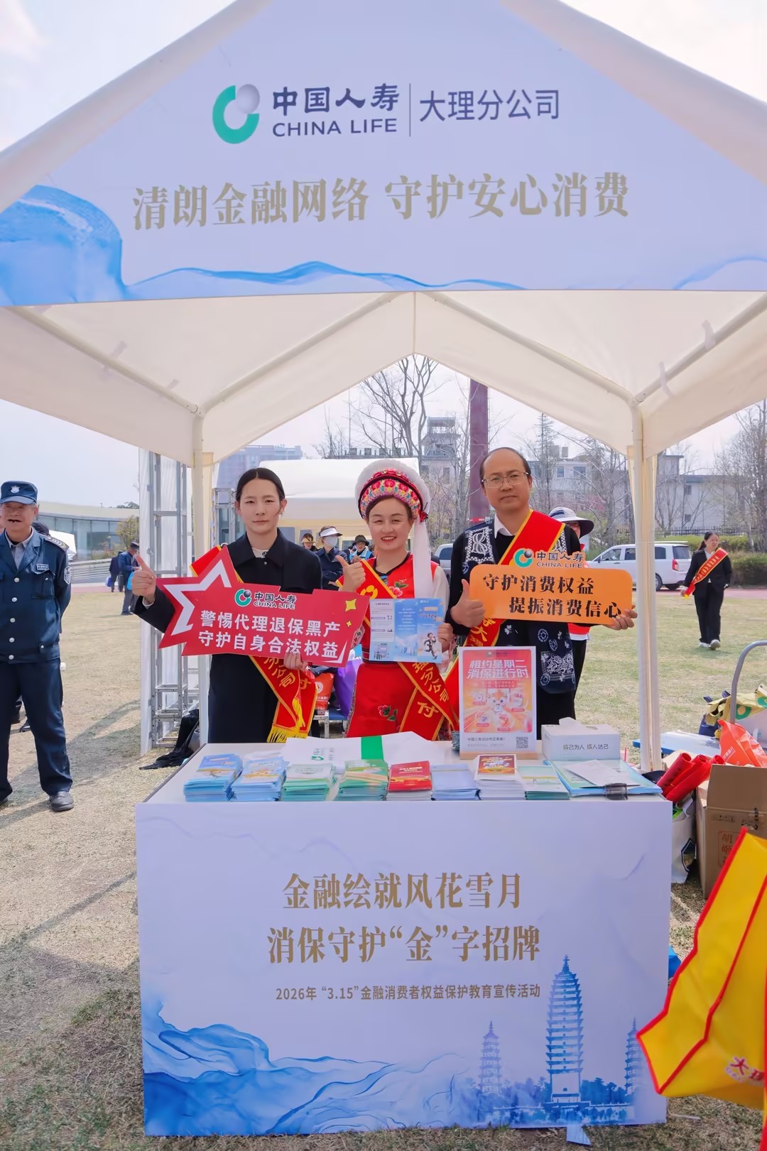 为深入贯彻落实金融消费者权益保护相关工作要求,普及金融知识、防范金融风险,提升广大群众金融素养。3月7日,以“金融绘就‘风花雪月’,消保守护‘金’字招牌”为主题,在国家金融监督管理总局大理监管分局指导下,邮政储蓄银行大理州分行、中国人寿大理分公司主办,大理州银行业协会、大理州保险行业协会及辖区30余家金融机构协同参与;精准选址大理文旅热门IP洱海生态廊道旅游景区,隆重举办2026年“3·15”金融消费者权益保护教育宣传活动。活动围绕“清朗金融网络 守护安心消费”主题口号,以“融屏破界、政企协同、非遗赋能、文旅融合”为创新抓手,构建“线下沉浸式体验+线上全流程直播”宣传矩阵。为群众送上一场金融知识盛宴。
