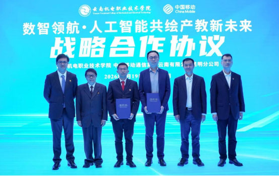 发布会上,云南机电职业技术学院与昆明移动签订“数智领航·人工智能共绘产教新未来”战略合作协议,将在智算基础设施建设、5G+互联网应用、校园智慧化升级等领域深化合作,探索人工智能赋能职业教育新路径。