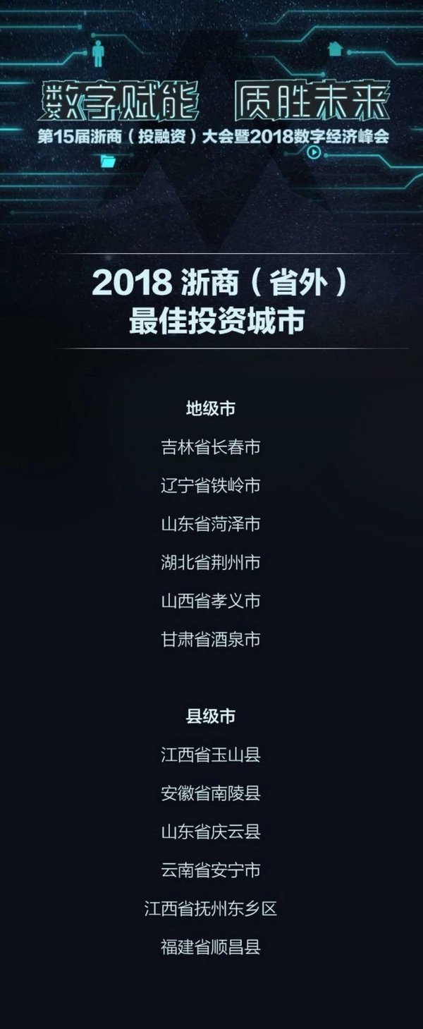 6月7日上午,备受商界关注的“第十五届浙商投融资大会暨2018数字经济峰会”在杭州隆重开幕,2018浙商(省外)最佳投资城市评选结果揭晓:吉林长春等6个地级市、云南安宁等6个县级市,从全国众多候选城市中脱颖而出,成为“2018年浙商(省外)最佳投资城市”。其中,安宁成为云南省唯一获此殊荣的县市。