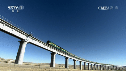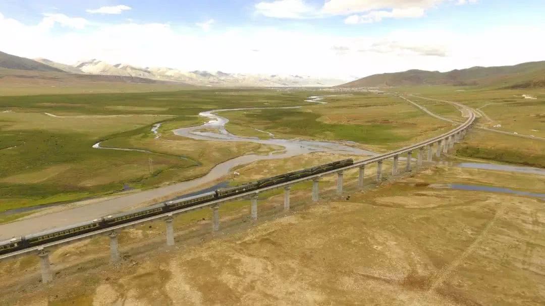 青藏铁路如一条巨龙蜿蜒在苍茫雪域