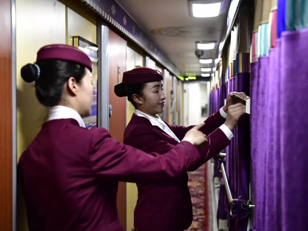 1月21日,贡久曲珍(左)提示妹妹旦增央金检查车厢设备。