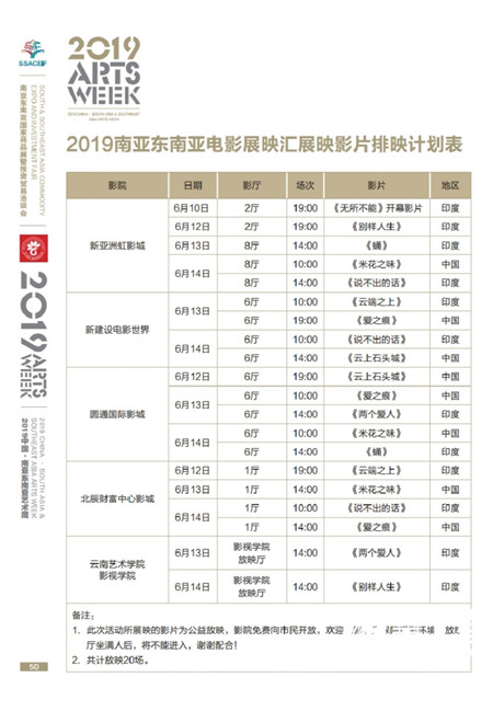 “2019中国·南亚东南亚艺术周”在昆开幕 多部电影免费观看