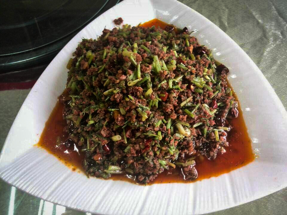 杨林“毛驴子打滚”须选用上好的糯稻米面,用40度左右的温水与米面和拌,用力搓揉,再拍打成饼状。主要配料由苋菜、苏子、花生、大豆、芝麻炒香舂碎,加上白糖或红糖碎末拌匀,甜淡与否,因个人喜好而定。杨林“毛驴子打滚”这道地方小吃,吃起来香甜可口,因用糯米制成,软腻适中,劲道耐嚼,回味悠长。