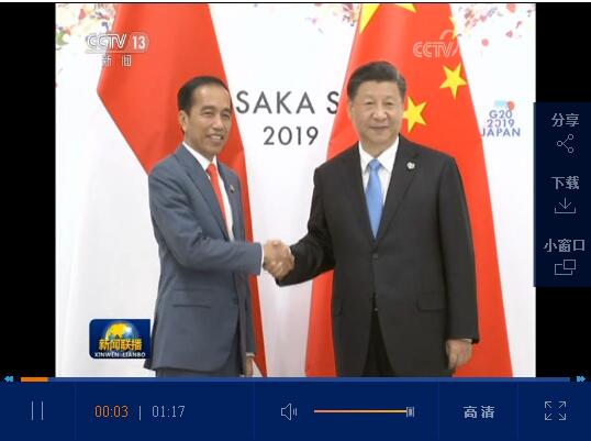 国家主席习近平28日在大阪会见印度尼西亚总统佐科。