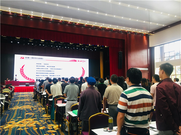 党员齐声高唱《黄河大合唱》。