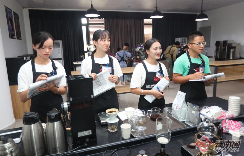 普洱学院咖啡专业的大学生在云南(国际)咖啡交易中心的培训中心接受专业培训学习。