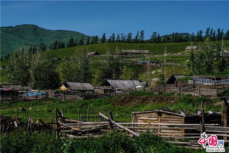 【点睛】村庄在林深处,林中有溪流潺潺而过,马群在树荫下懒洋洋的散步,图瓦人的家—一座座圆木搭建的小木屋散落在山坡上、溪谷边,房屋前都有一个木栅栏围起的院落,地是草坪,自然生长的野花是装饰。