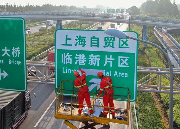 图说:上海自贸区临港新片区道路指示牌。陈梦泽 摄