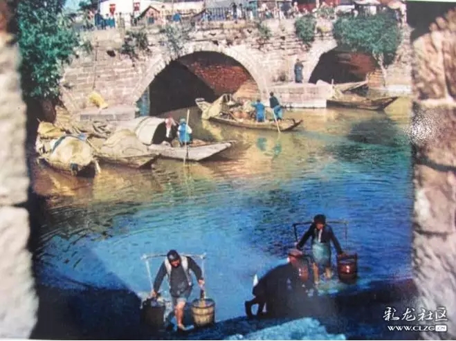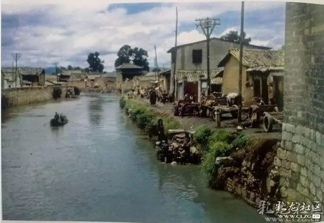 来华美军摄于1944年,盘龙江上世纪60年代以前盘龙江沿途两岸附近居民都到江边挑水饮用。图自彩龙社区@大卫