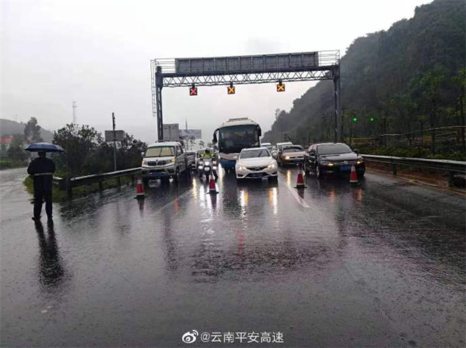 交警建议过往车辆可从三合邑、安丰营收费站下高速绕行到320国道,从长田收费站上高速。由于高速路段多处下雨,道路湿滑,交警提醒过往车辆减速慢行,保持安全跟车距离,谨慎驾驶,注意行车安全。