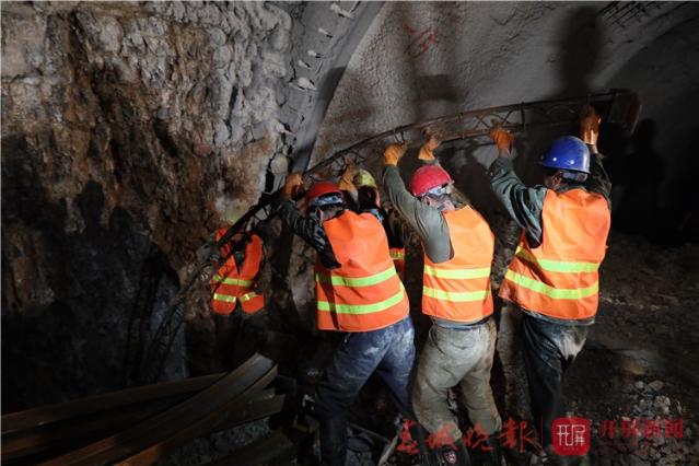 自2015年4月开工建设以来,中铁二十一局参建人员根据围岩变化情况,及时调整施工方案,采用三台阶法施工,预留核心土,超前预加固,逐榀开挖支撑喷护加固,先后多次克服掌子面溜坍、突泥涌水及软岩大变形等地质灾害,在确保隧道施工进度的基础上,顺利实现安全“零事故”、质量“零缺陷”贯通目标。
