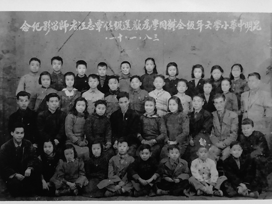 1949年1月11日,中华小学六年级全体同学欢送覃志江老师时的合影。本版照片由云南中华职业教育社提供