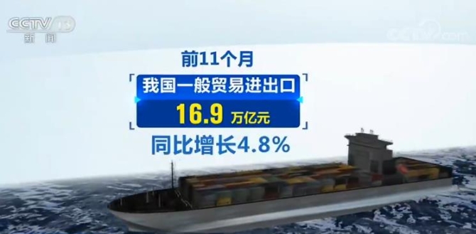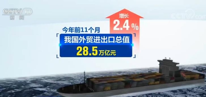 前11个月我国外贸进出口总值28.5万亿元 同比增长2.4%