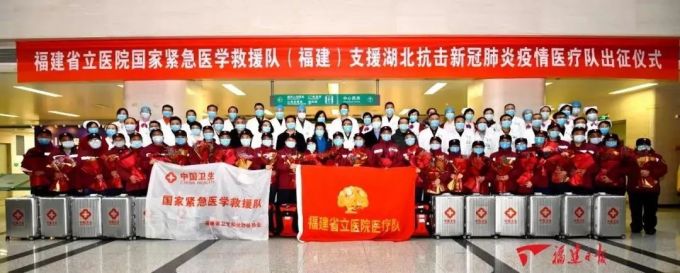 2月3日晚,国家紧急医学救援队(福建)从福建省立医院集结出发,驰援武汉。出发的这支救援队共29人,全部来自福建省立医院,涵盖重症医学、呼吸与危重症医学、急诊医学、医院感染管理等专业及驾驶员、电工等后勤保障人员。从接到任务至出发短短3小时完成全部准备。