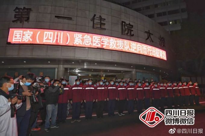 2月3日晚上,四川省第四批援助湖北医疗队集结完毕,以四川省人民医院医生为主体的国家(四川)紧急医学救援队的70余名队员整装待发,按国家卫健委统一时间安排,奔赴武汉。
