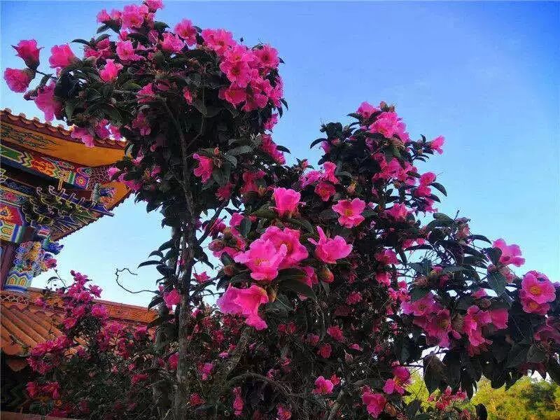 宋朝诗人陆游曾这样歌咏山茶花,“似有浓妆出绛纱,行充一道映朝霞。飘香送艳春多少,犹见真红耐久花。”二月初,楚雄的山茶花便开始在枝头盛放,红、白、粉等各色花朵绘尽春天的姹紫嫣红。