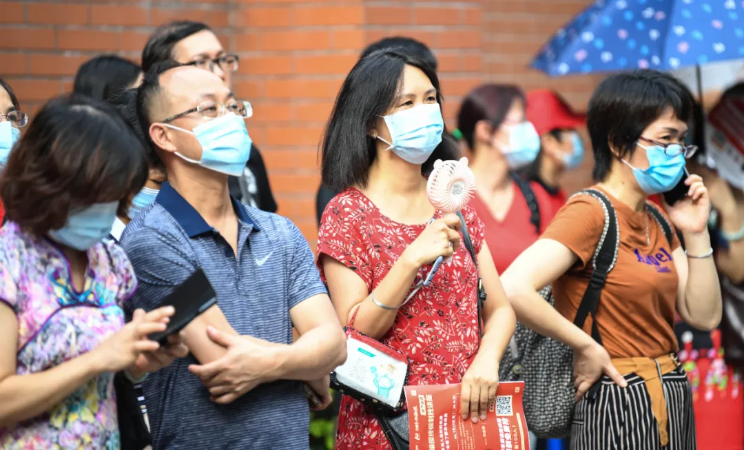 7月7日,考生家长在广州市第七中学考点外等候。新华社记者 邓华 摄