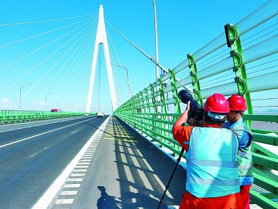 我们在大桥身上应用了4套管理系统——结构健康与安全监测系统、土建养护管理系统、平台匝道桥智能化实时监测系统和特大型桥梁智能化机电管理系统。这4套系统实现了对大桥全方位、全覆盖、智能化的数字管理,也保证了养护工作者的安全,处于国际领先水平。