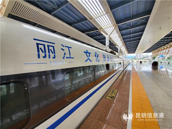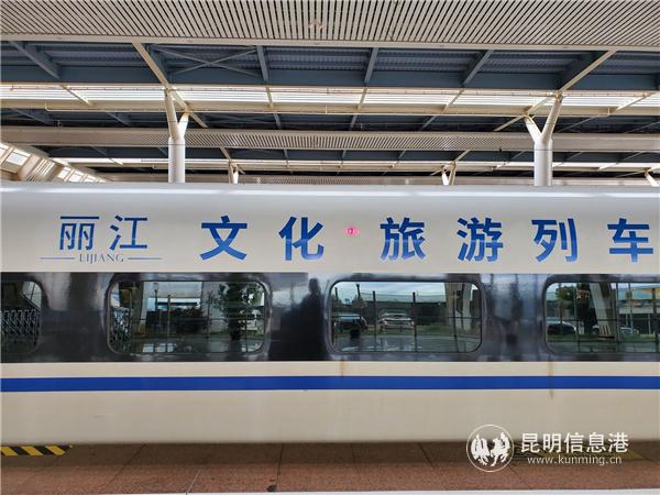 昆明信息港讯 记者合宇聪 7月24日上午10时58分,“丽江文化旅游列车”京昆线G406/1次高铁专列于从昆明南站出发,经过昆明南、曲靖北、盘州、安顺西、贵阳北、贵定北、三穗、怀化南、新化南、邵阳北、娄底南、长沙南、岳阳东、武汉、郑州东、石家庄站点,于当晚11时18分到达终点站北京西站,运行总时长13小时20分。该趟列车通过高铁冠名的宣传方式,搭建新平台、新窗口,向乘客展示推广丽江文化旅游品牌。