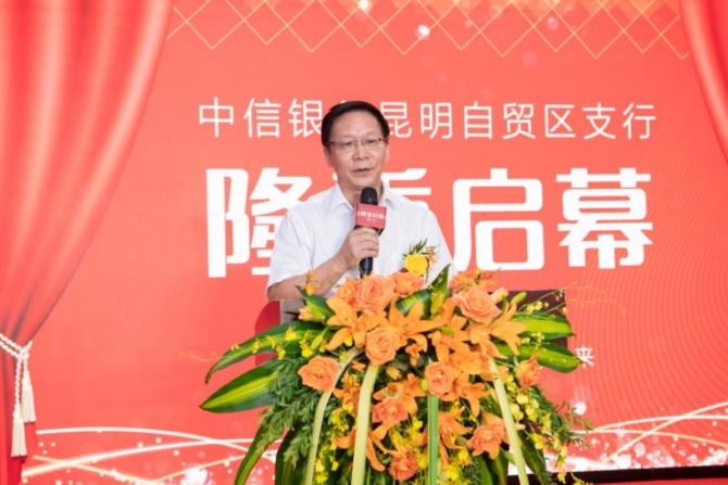 在致辞中,李河流代表云南自贸区昆明片区(昆明经开区)管委会向中信银行自贸区支行的成立表示祝贺,指出中信银行具有服务自贸区建设的专业品牌和“金融+实业”的协同优势,在助推实体经济、支持地方经济发展等方面发挥了重要作用。随着中信银行自贸区支行的设立和中信联合舰队的组建,必将为昆明片区金融改革创新、高质量发展注入新的活力。昆明片区将与中信银行一道携手,在推动跨境人民币业务、促进跨境投融资便利化、扩大金融领域对外开放等方面进行深入合作,打造一体化、专业化、特色化金融服务新模式。同时,真诚欢迎各类金融机构到园区设立分支机构、广大企业入区投资兴业,把昆明片区作为梦想的新起点、事业的新平台,共享发展商机、收获合作硕果、成就发展梦想。