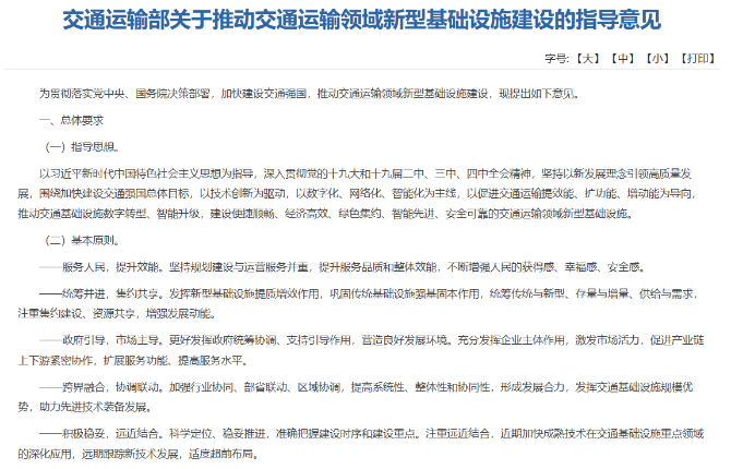 《指导意见》提出14项主要任务:一是打造融合高效的智慧交通基础设施,以交通运输行业为主实施。以智慧公路、智能铁路、智慧航道、智慧港口、智慧民航、智慧邮政、智慧枢纽,以及新材料新能源应用为载体,体现先进信息技术对行业的全方位赋能。