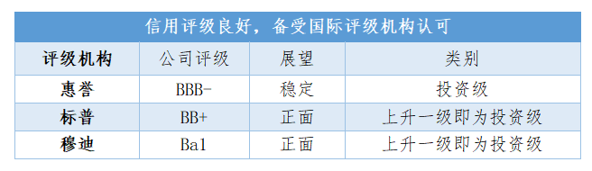 当前,碧桂园备受境内外信贷评级机构肯定。国内评级机构中诚信国际和联合评级均给予碧桂园AAA级。境外评级机构近年也相继调升碧桂园评级,惠誉于2017年9月将碧桂园企业信用评级由BB+上调至投资级BBB-。目前民营房企中,只有碧桂园等少数几家获得了惠誉投资级评级。穆迪于2019年8月将碧桂园企业评级展望调升为正面(从Ba1/稳定调升为Ba1/正面),这都展现了信用评级机构对碧桂园融资能力和稳健的财务管理能力的认可。