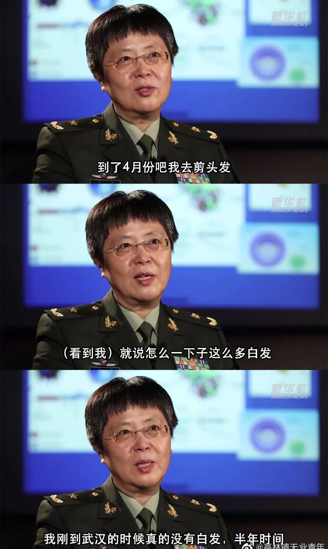 研发疫苗的短短半年时间,陈薇的头发由黑变白,许多人看了十分心疼。陈薇说:“我们承担了更多的困难,我们承担了更多的危险,人民会受到更少病魔的折磨,更多的过上健康生活。”