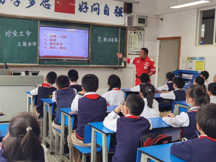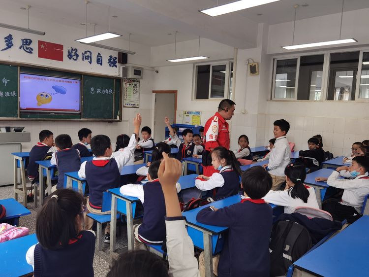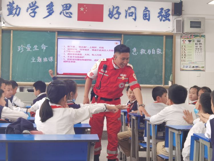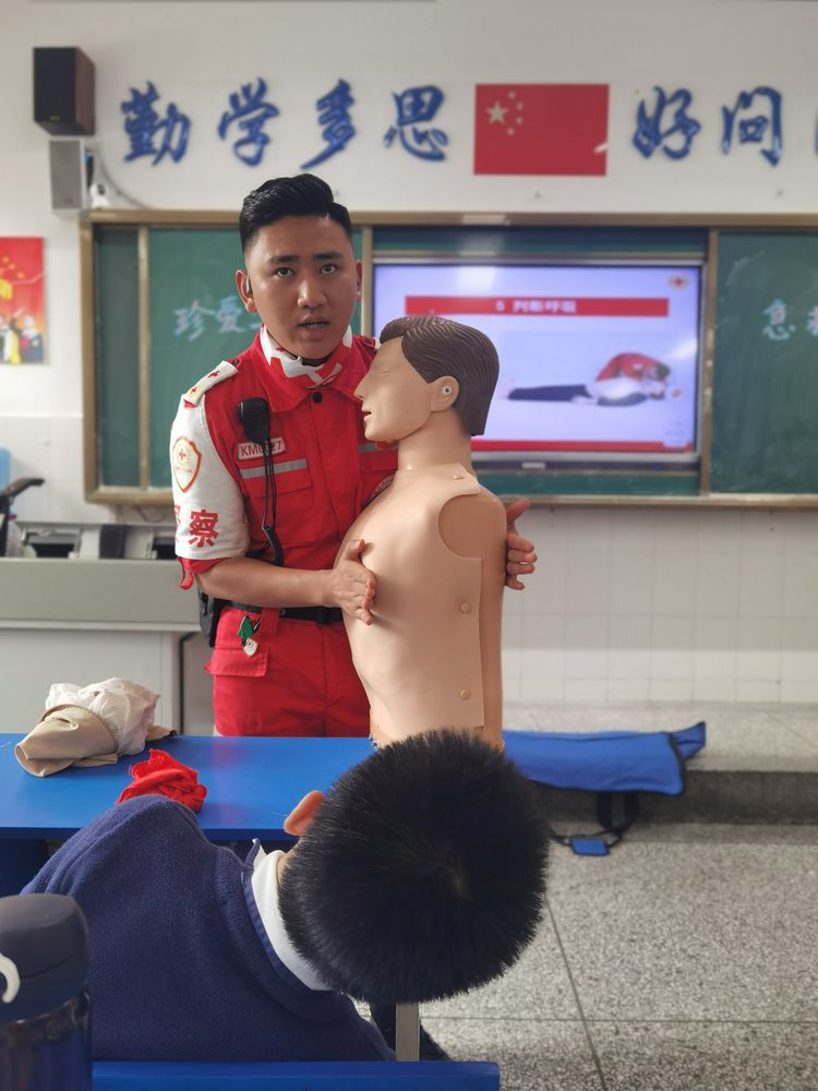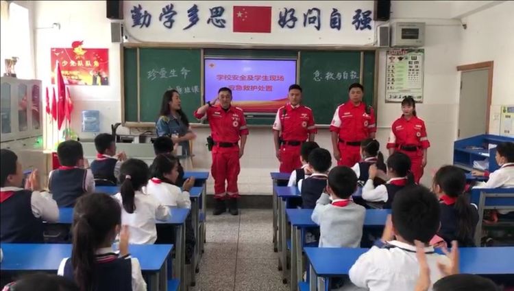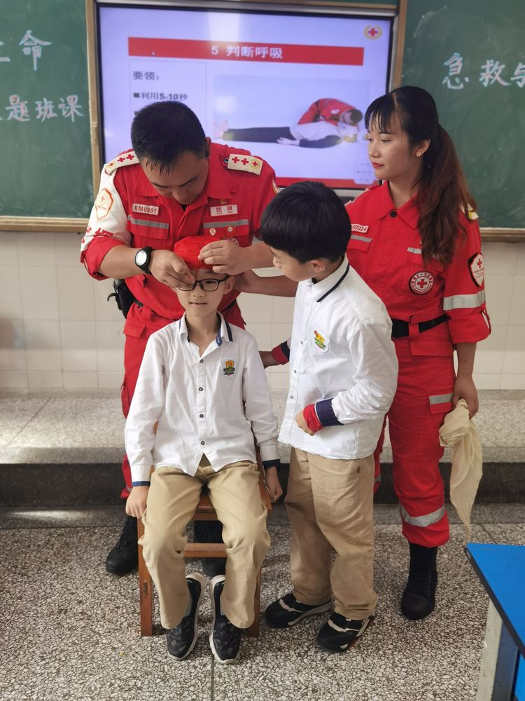 为学习和实践应急救护知识,增强师生自救互救意识和技能,保障师生的生命安全和身体健康。2020年9月25日下午,昆明市红十字会备灾救灾服务中心、应急救护培训中心主任、救援队政治教导员岳巍及昆明红十字救援队搜救组潘禹诚,昆明红十字督察组刘易玮,昆明红十字秘书组张小梅一行为四5班开展了主题班队课,进行应急救护知识普及培训。通过生动的理论学习,惊心动魄又有条不紊的现场实操培训,同学们获益良多。