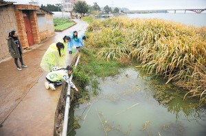 志愿者清理滇池入湖口河道垃圾。 记者赵伟摄