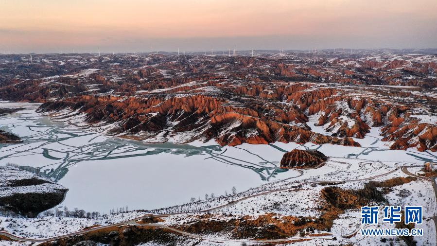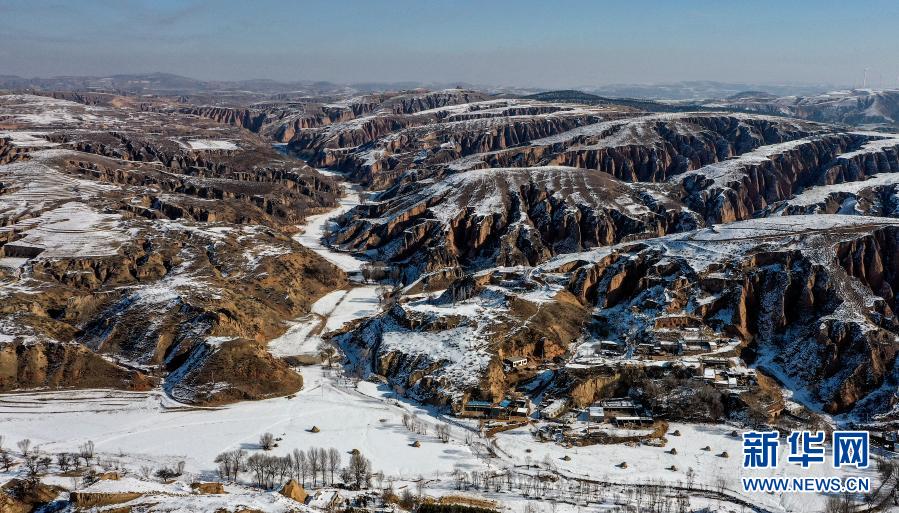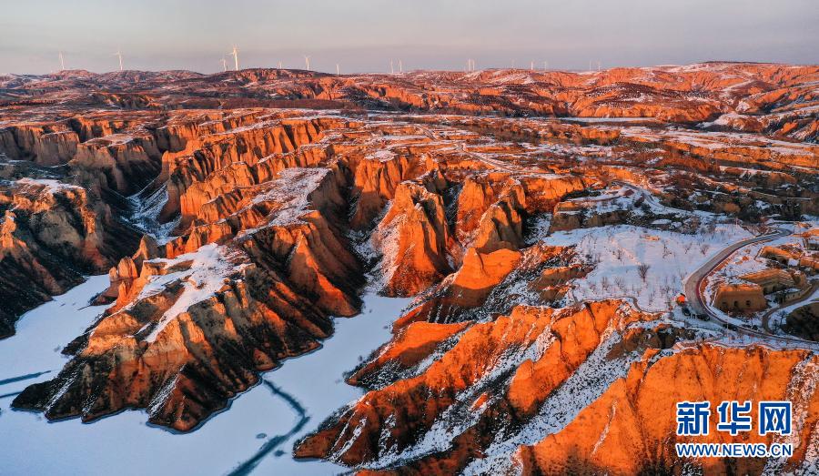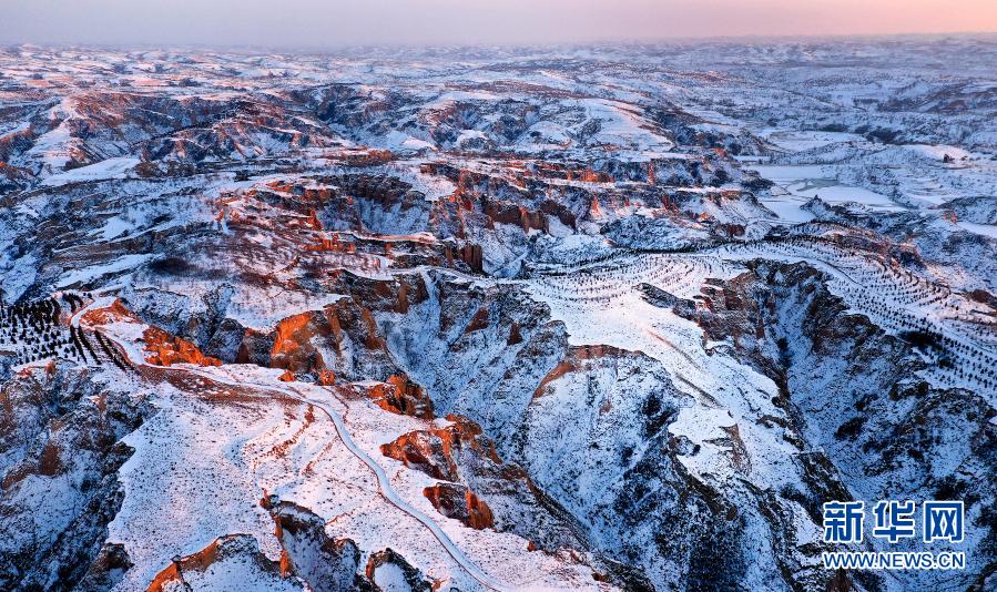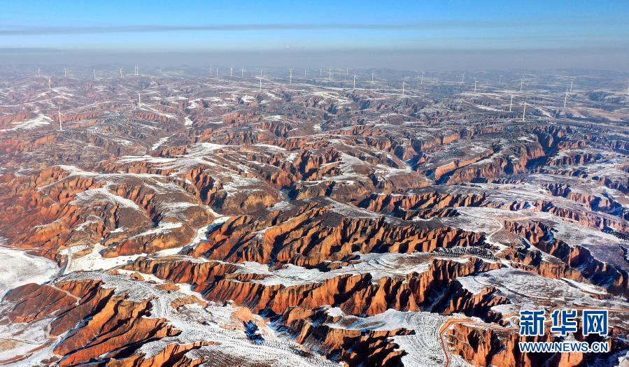 12月3日拍摄的雪后初霁的陕西省榆林市麻黄梁黄土地质公园(无人机照片)。当日,位于黄土高原的陕西省榆林市麻黄梁黄土地质公园雪后初霁,美景如画。麻黄梁黄土地质公园总面积37平方公里,厚重的黄土层历经千百年风雨的冲刷,形成了奇特的地貌景观,令人叹为观止,成为人们旅游、摄影的好去处。新华社记者 陶明 摄