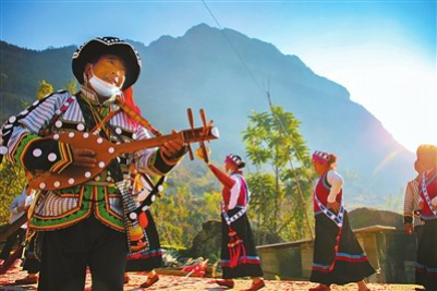 “结婚时太穷,没条件买。现在赚了钱,想把当年亏欠媳妇儿的补上。”乔进华说,过完“阔时”节他还要回工地,更打算带上自己的朋友一起, “我要把我学到的技术教给同伴,带领大家一起奔小康。”饮布汁,唱摆时,弓弩上弦、秋千荡起,乔进华拉着妻子加入村民们的队伍,边唱山歌边跳起欢快的傈僳族舞蹈,幸福的笑容洋溢在每个人脸上。 “党的好政策之下,我们的家乡,房子很好看,每村每户通公路,老人孩子都快乐……”歌声在大峡谷中回荡,声声不息。