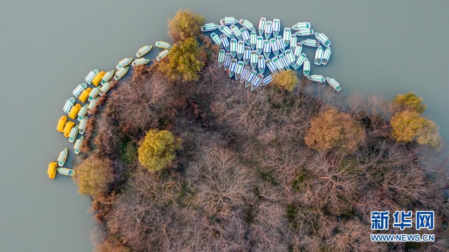 12月19日拍摄的江苏省扬州市宋夹城公园冬景(无人机照片)。新华社发(齐立广 摄)